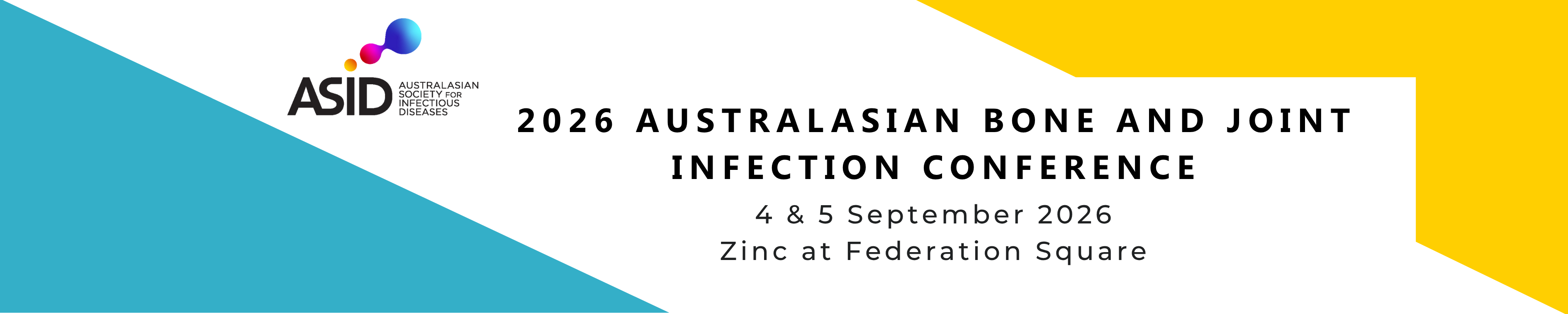 On behalf of the Australasian Society for Infectious Diseases (ASID), we are delighted to invite you to participate in the 2026 ASID Bone and Joint Infections Conference. This leading meeting is held every two years and provides an excellent opportunity to focus on a multi-discipline collaboration to better the lives of many.