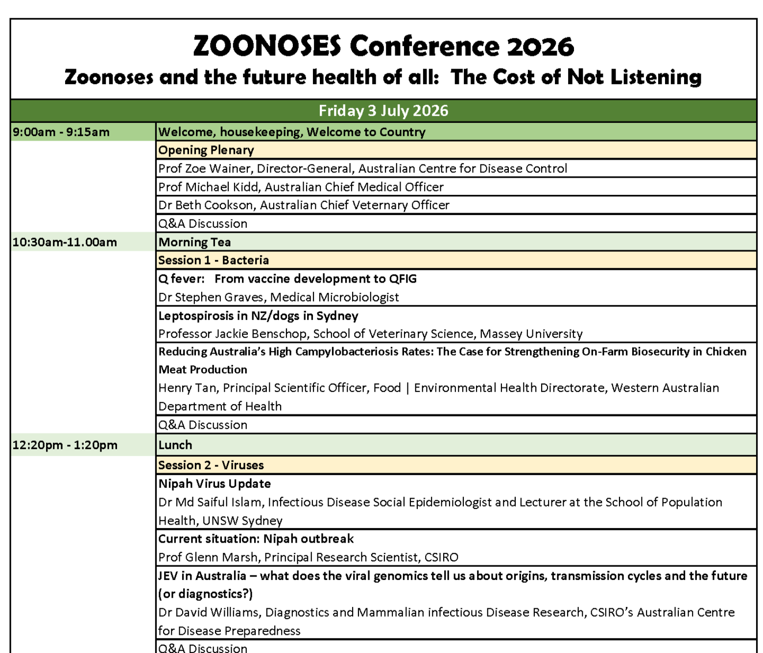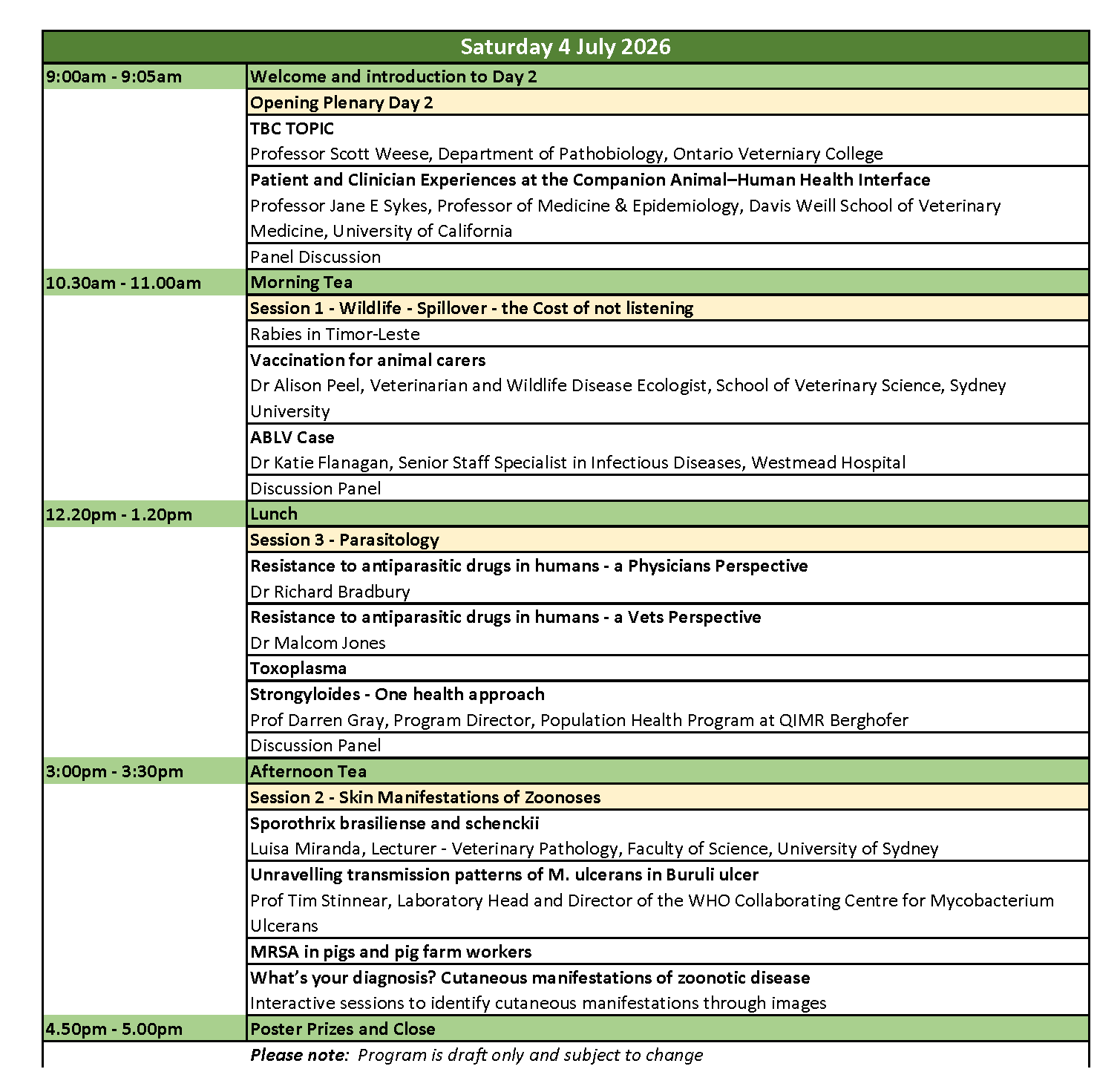 Please note this is a draft program and subject to change without notice.